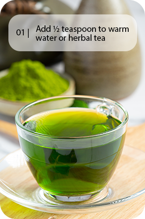 With its mild herbal taste and fine texture, the powder blends easily into smoothies, warm water, teas, or wellness recipes